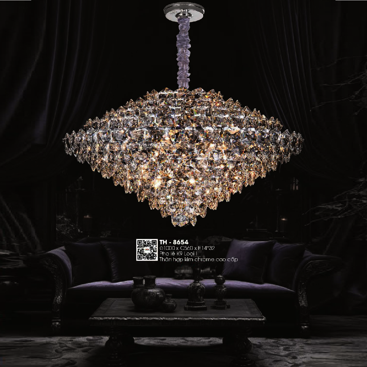 • Sản phẩm: TH - 8654: Đèn thả LED Phale K9 nguyên khối - KT: Ø1000mm x H560mm - Bóng đèn E14 x 32 bóng