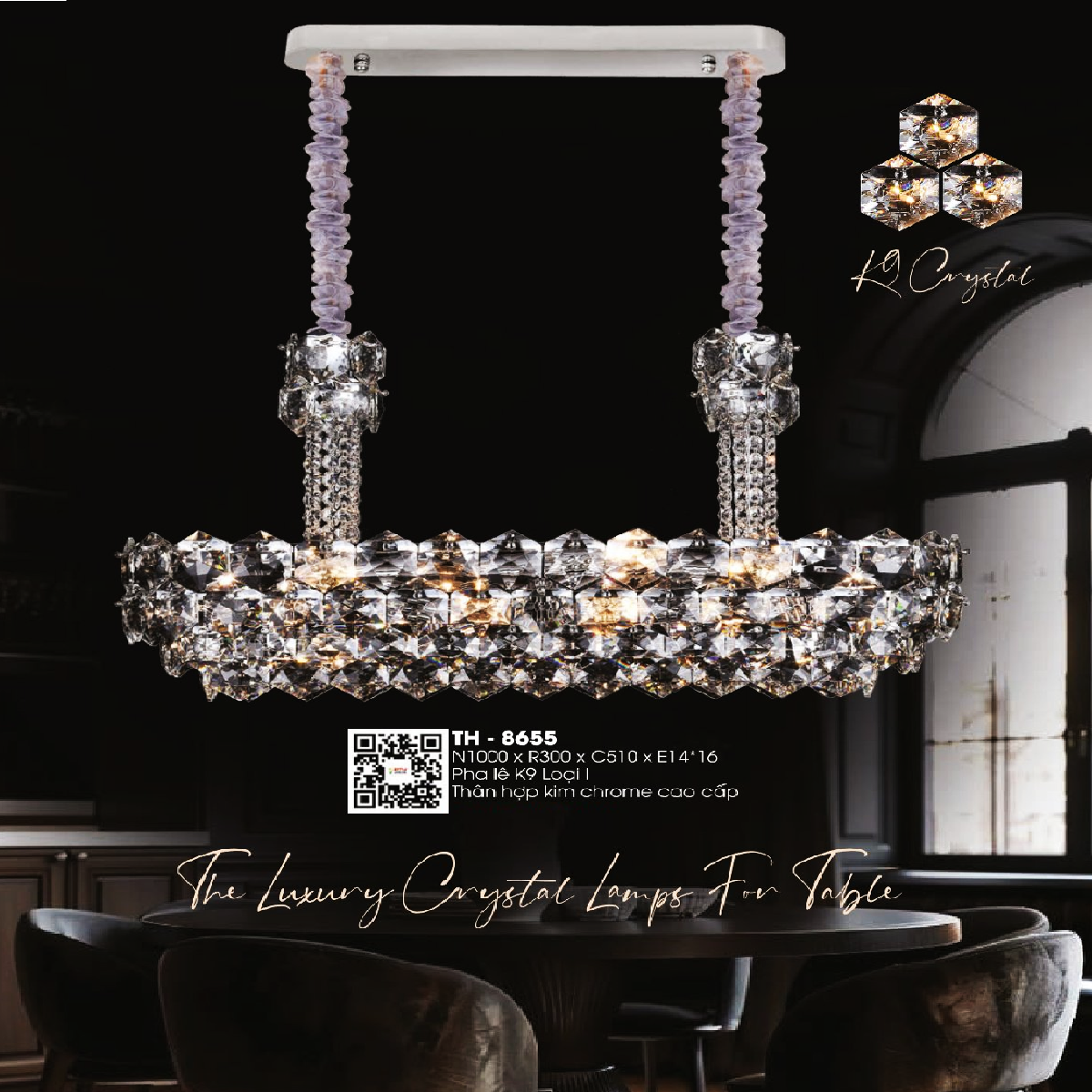 - Sản phẩm: TH - 8655: Đèn thả ngang Phale - KT: L1000mm x W300mm x H510mm - Bóng đèn E14 x 16 bóng