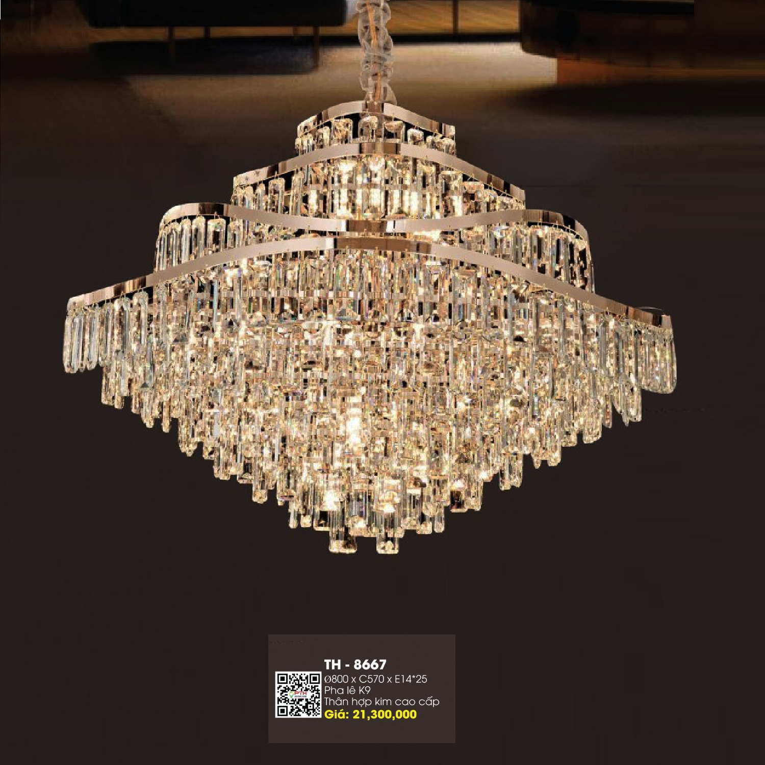 - Sản phẩm: TH - 8667: Đèn thả Phale K9 - KT: Ø800mm x H570mm - Bóng đèn E14 x 25 bóng