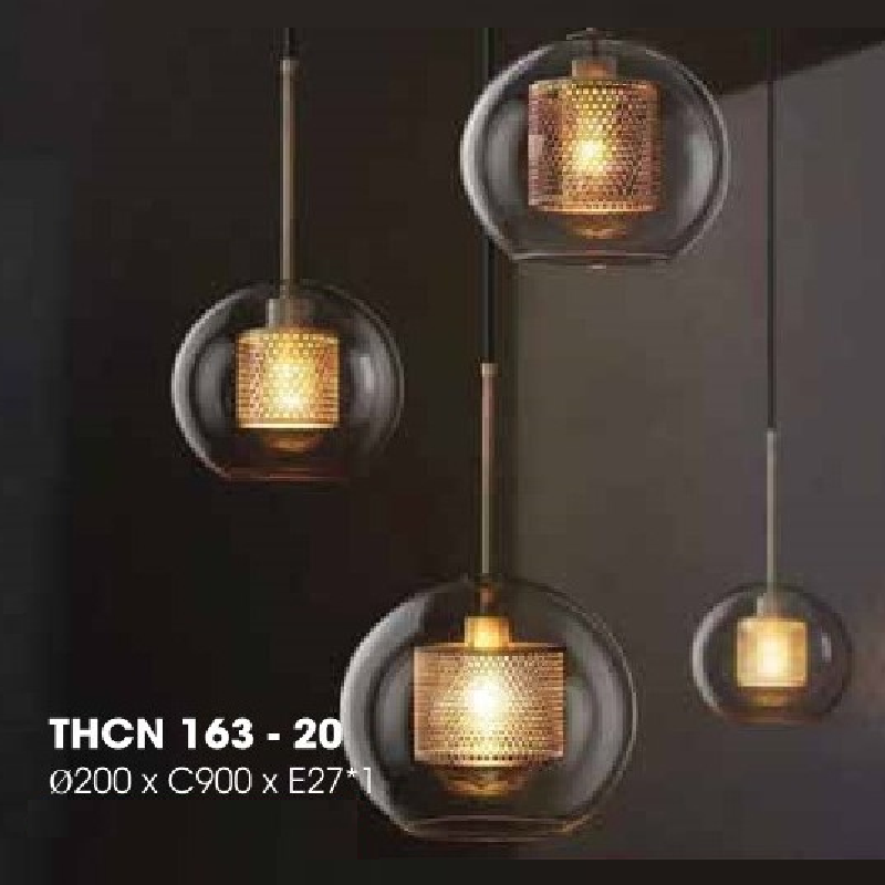 • Sản phẩm: THCN - 163 -20: Đèn thả đơn, chao thủy tinh - KT: Ø200mm x H900mm - Bóng đèn E27 x 1 bóng