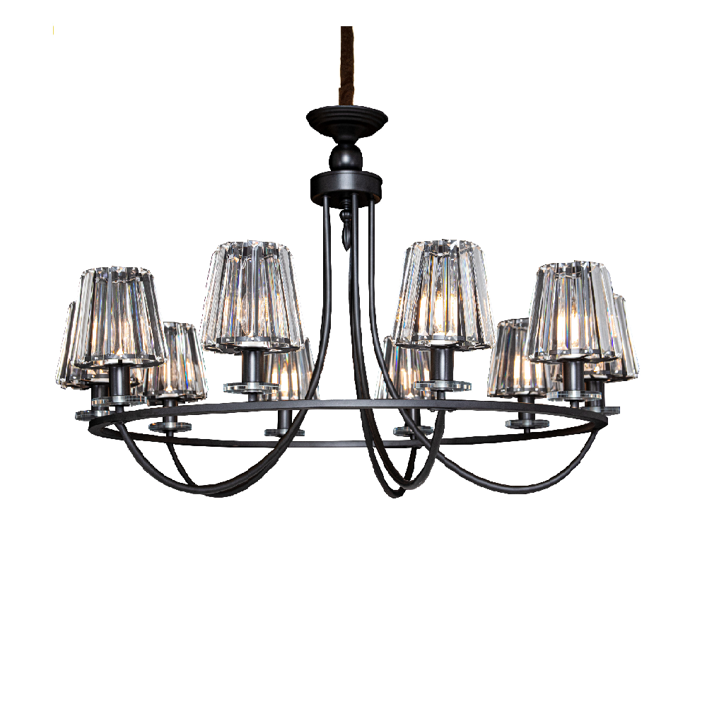 THCN 297: Đèn chùm 10 tay chao thủy tinh - KT: Ø900mm x H900mm - Bóng đèn E14 x 10 bóng