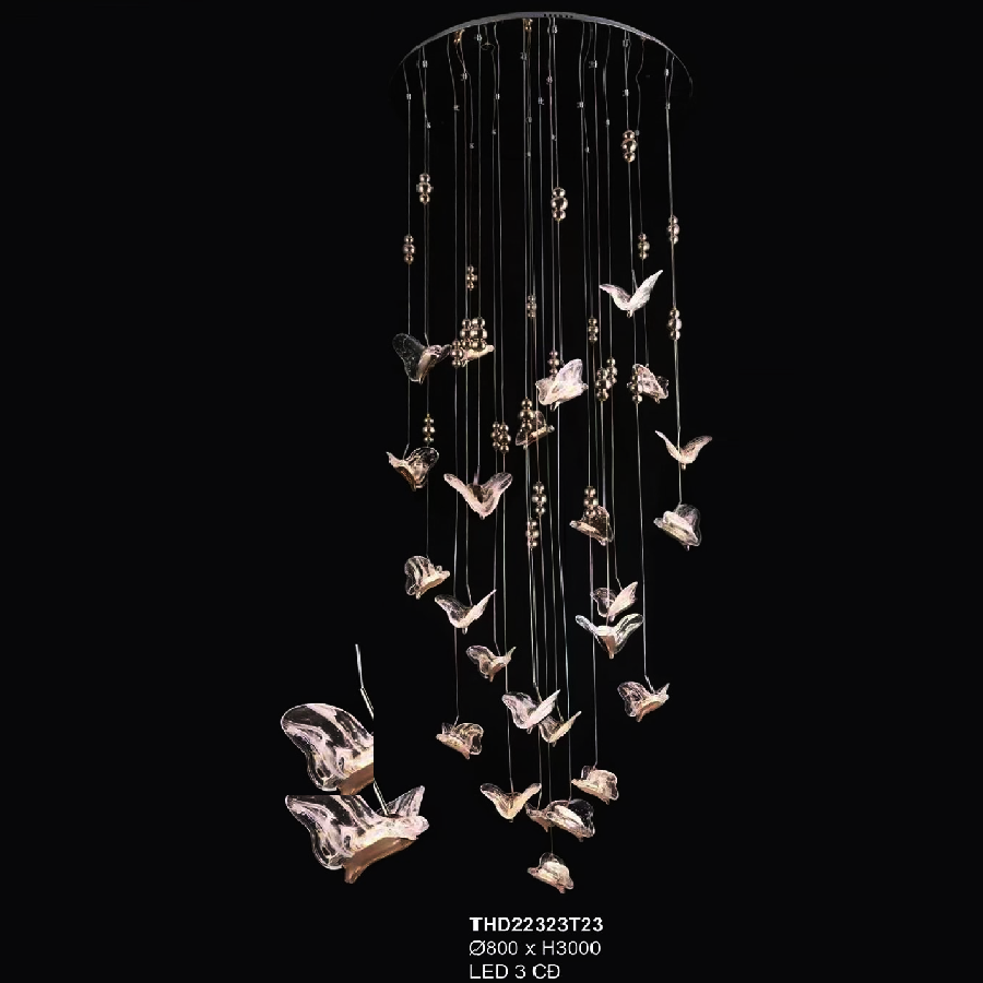• Sản phẩm: 35 - THD22323T23: Đèn thả dây LED chao hình bướm - KT: Ø800mm x H3000mm - Đèn LED đổi 3 màu