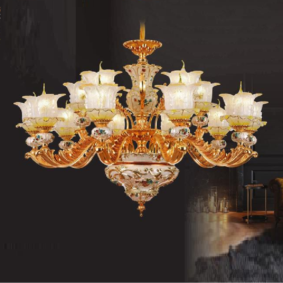 CODE: 9830 - 15: Đèn chùm đồng chao đá 15 tay - KT: Ø1000mm x H600mm - Bóng đèn chân E14 x 15 bóng