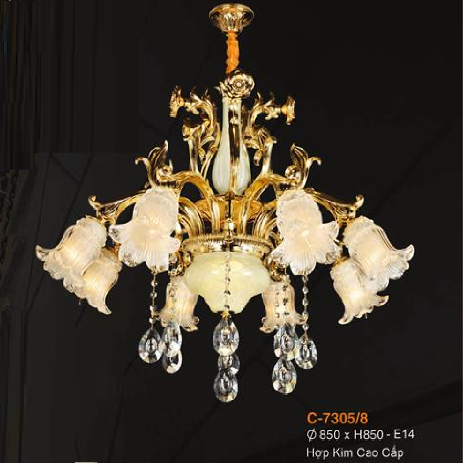 E - C - 7305/8: Đèn chùm 8 tay - KT: Ø850mm x H850mm - Bóng đèn chân E14
