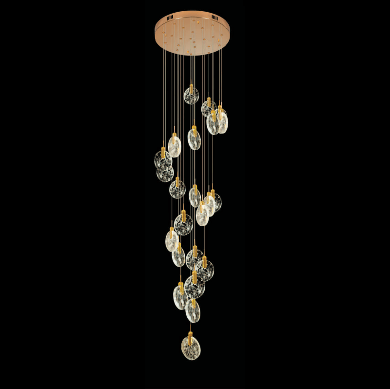 HF - TL 1602/23: Đèn thả dây chao thuỷ tinh - KT: Ø600mm x H2500mm - Đèn LED 3W x 23 bóng ánh sáng vàng - Remote
