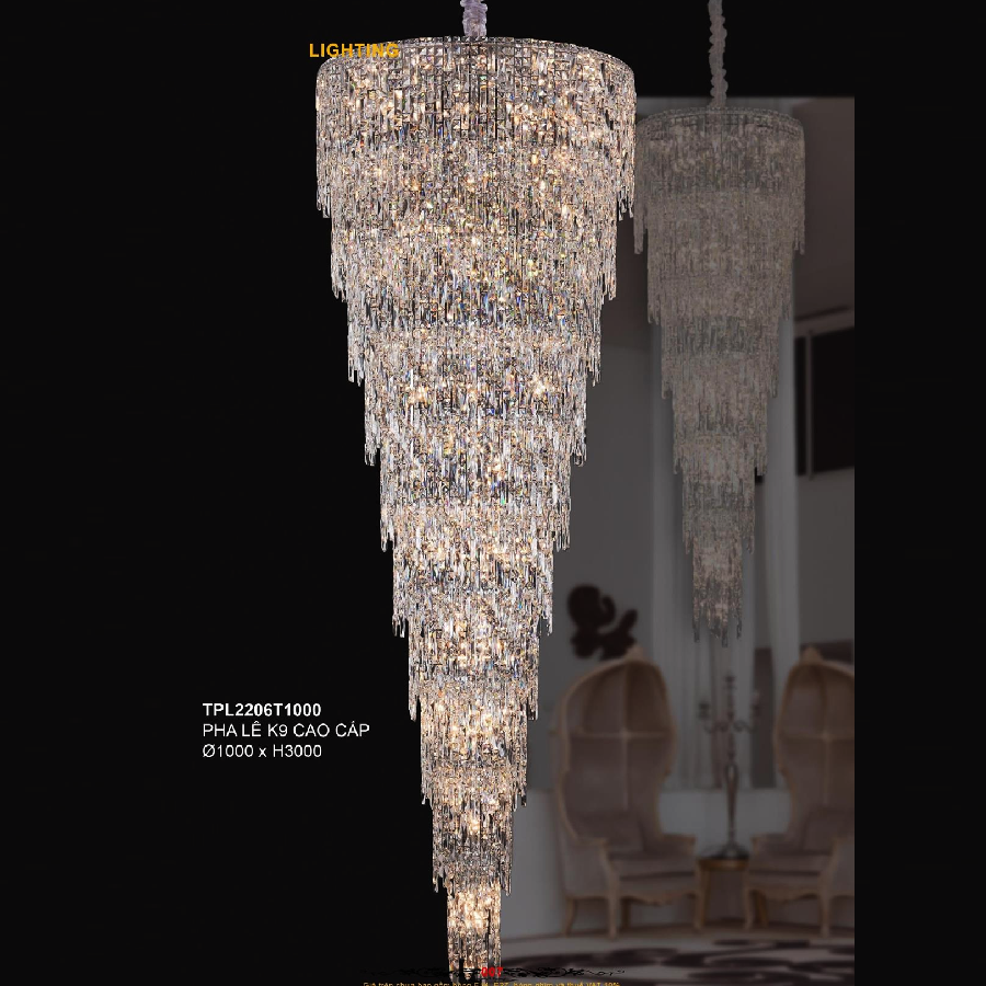 35 - TPL2206T1000: Đèn thả phale K9 cao cấp - KT: Ø1000mm x H3000mm - Đèn chân E14 x 94 bóng