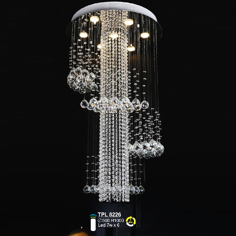 SN -  TPL 8226 - Đèn thả dây  đèn LED - KT: Ø500mm x H1000mm - Đèn LED 7W x 6 bóng đổi 3 màu - Remote