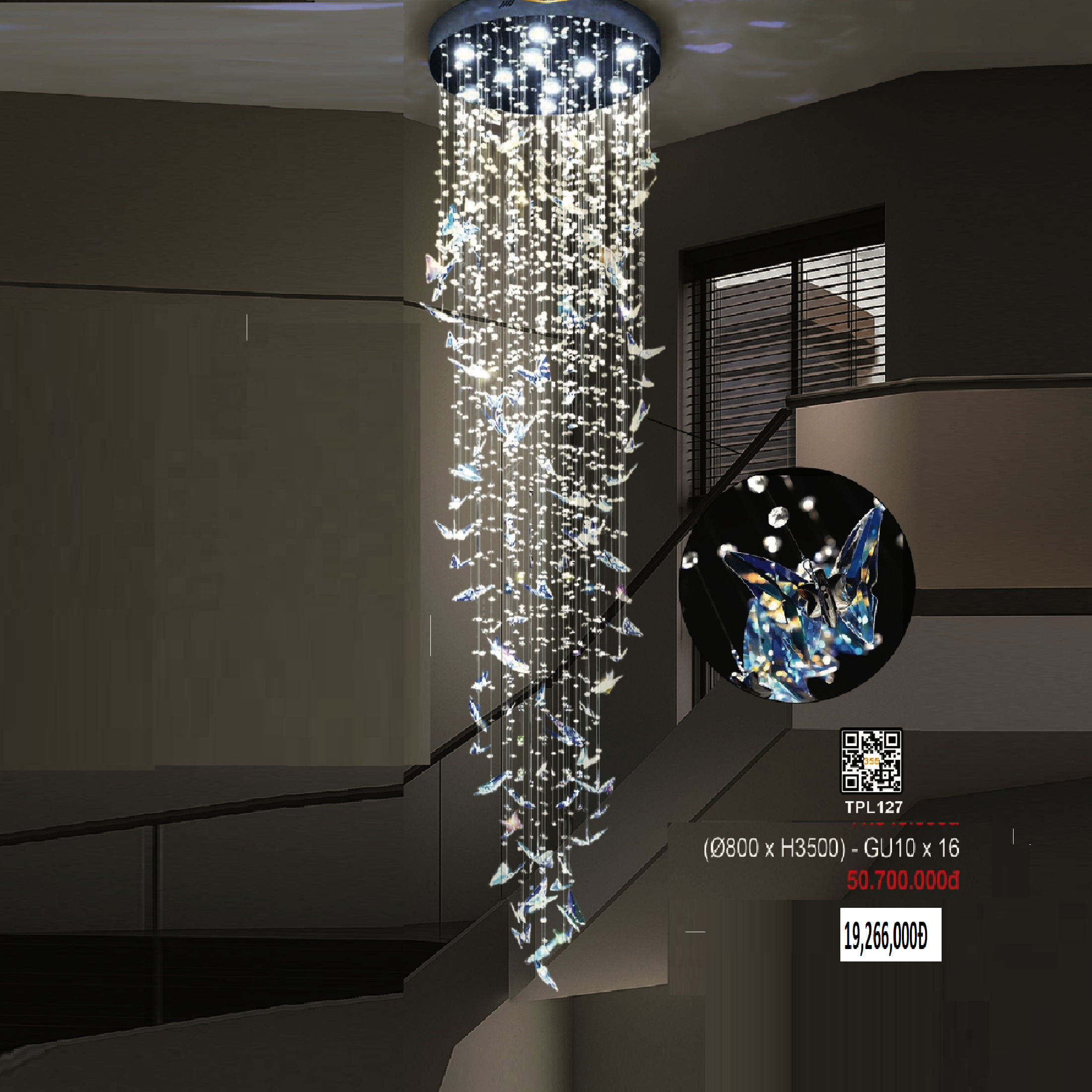 • Sản phẩm: TPL127: Đèn thả thông tầng Phale LED - KT: Ø600mm x H2000mm - Bóng đèn LED GU10 x 9 bóng
