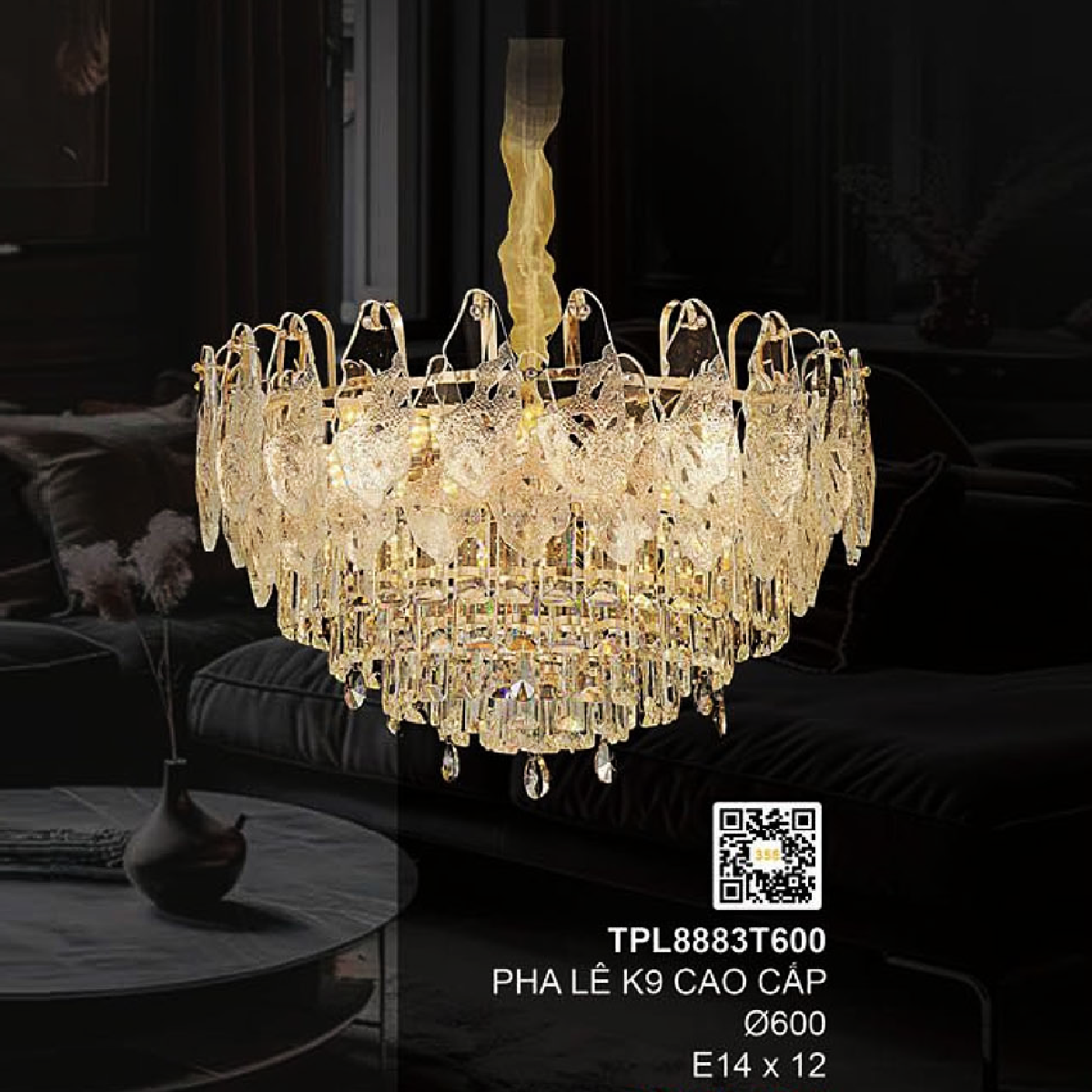 5. TPL8883T600: Đèn thả Phale K9 cao cấp - KT: Ø600mm - Bóng đèn E14 x 12 bóng