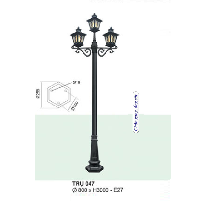 - Sản phẩm: TRỤ 047: Đèn trụ sân vườn chất liệu hợp kim, 3 bóng