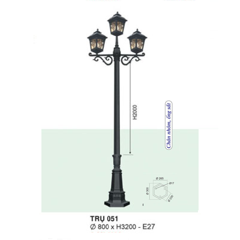 • Sản phẩm: TRỤ 051: Đèn trụ sân vườn chất liệu hợp kim, 3 bóng