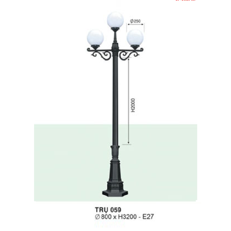 - Sản phẩm: TRỤ 059: Đèn trụ sân vườn chất liệu hợp kim, chao nhựa 3 bóng