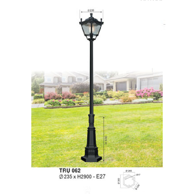- Sản phẩm: TRỤ - 062: Đèn trụ sân vườn chất liệu hợp kim 1 bóng