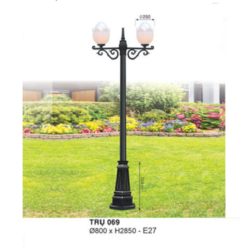 - Sản phẩm: TRỤ 069: Đèn trụ sân vườn chất liệu hợp kim, chao nhựa 2 bóng