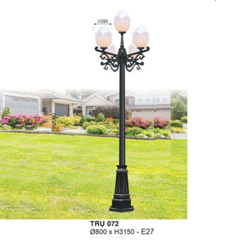 • Sản phẩm: TRỤ 072: Đèn trụ sân vườn chất liệu hợp kim, chao nhựa 5 bóng