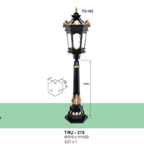 5. TRỤ - 278: Đèn trụ sân vườn chất liệu hợp kim