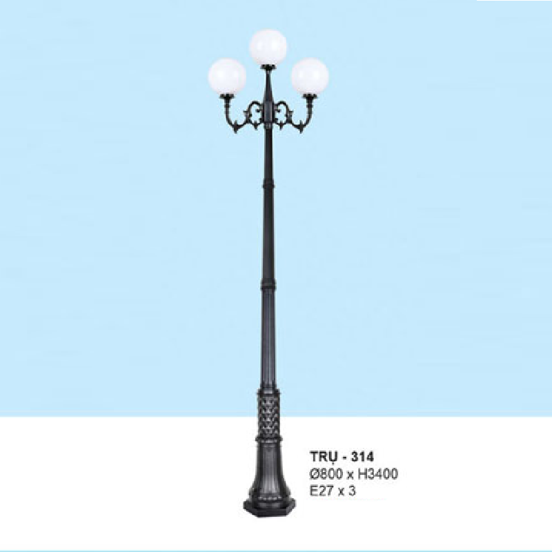 • Sản phẩm: TRỤ 314: Đèn trụ sân vườn chất liệu hợp kim chao quả bi nhựa 3 bóng