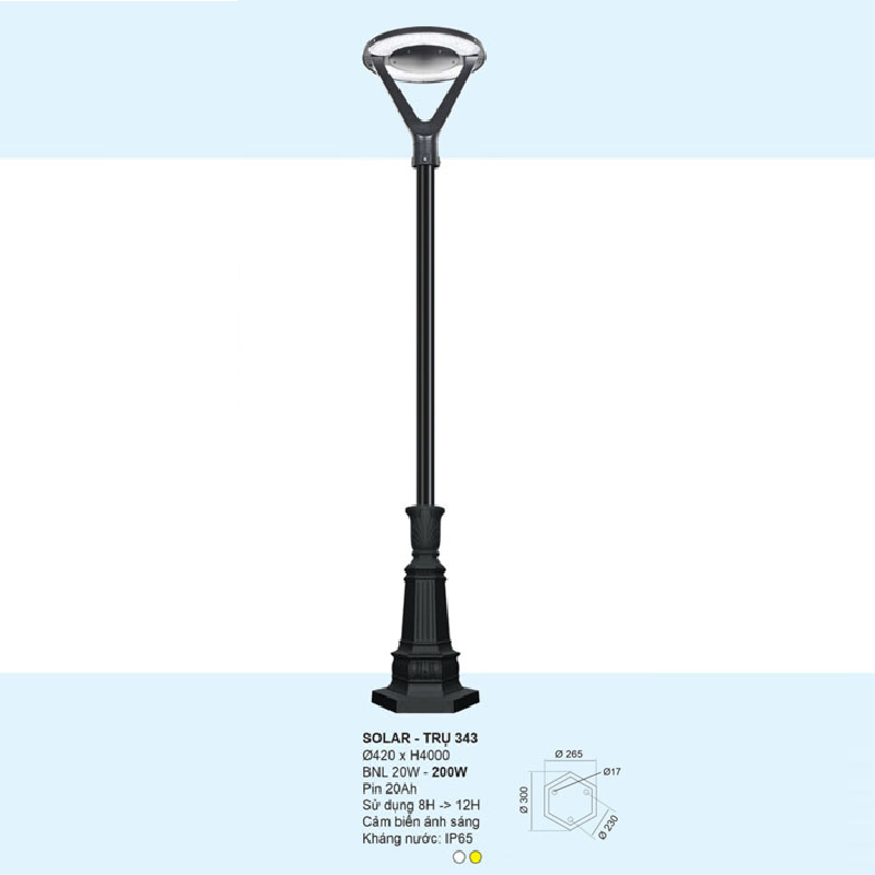 - Sản phẩm: TRỤ - 343: Đèn trụ sân vườn chất liệu hợp kim - Đèn LED - Ánh sáng trắng/vàng