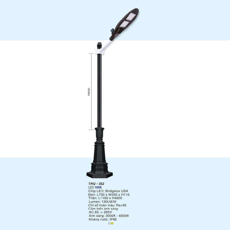 - Sản phẩm: TRỤ - 352: Đèn trụ sân vườn chất liệu hợp kim - Đèn LED - Ánh sáng trắng/vàng