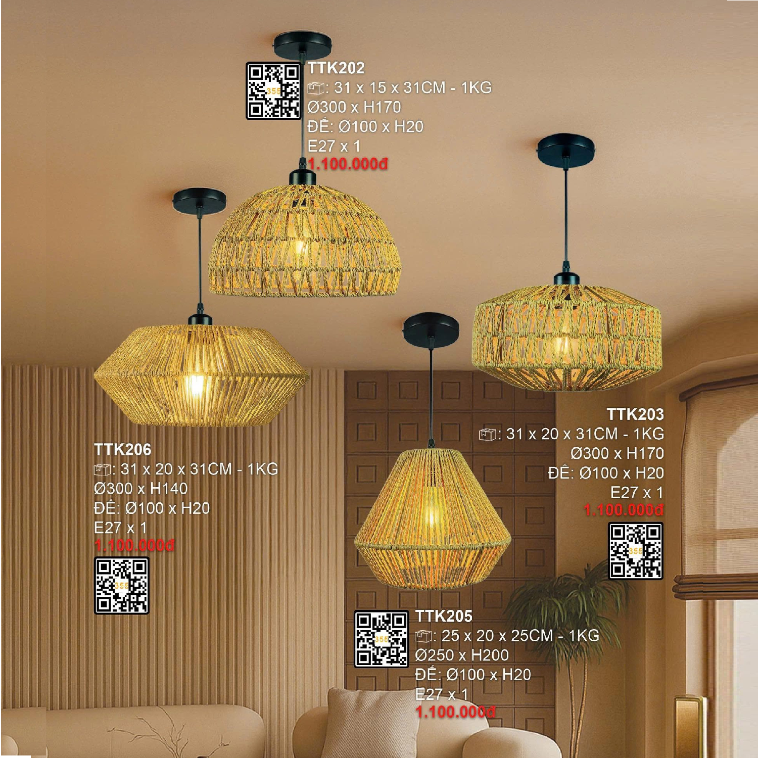 TTK202: Đèn thả đơn LED - KT: Ø300mm x H170mm - Đèn E27 x 1 bóng