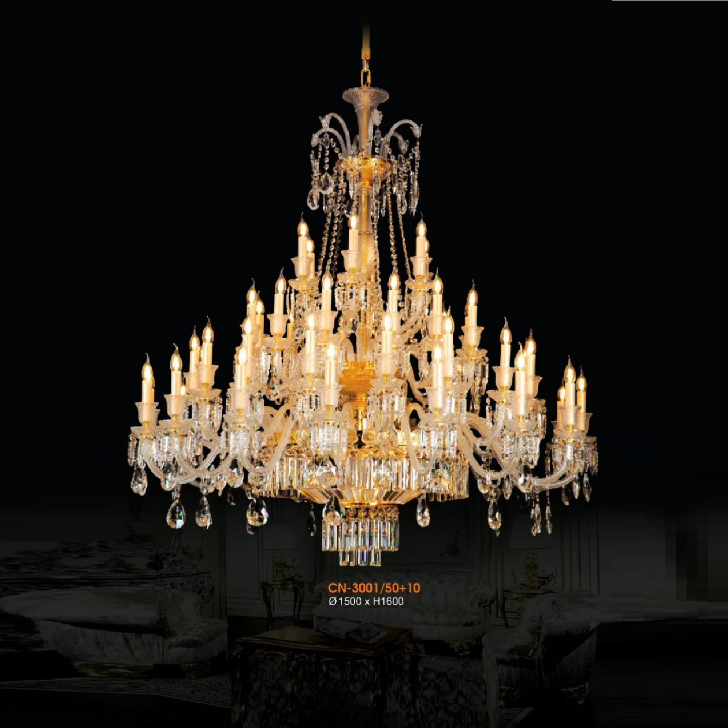 • Sản phẩm: V - CN - 3001/50+10: Đèn chùm Phale nến 60 tay - KT: Ø1500mm x H1600mm - Bóng đèn E14 x 60 bóng