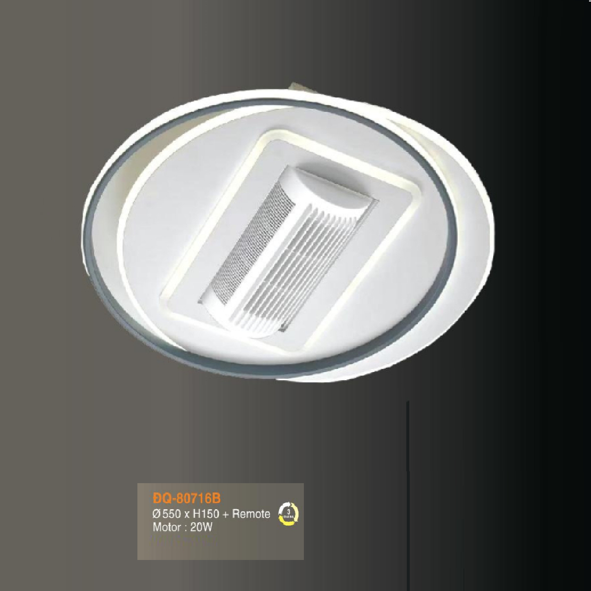 • Sản phẩm: V- ĐQ - 80716B: Đèn áp trần tròn + Quạt- KT: Ø550mm x H150mm - Đèn LED đổi 3 màu + Motor quạt 20W