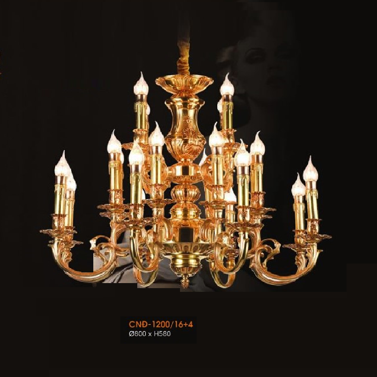 VE - CĐ - 1200/16+4: Đèn chùm đồng 20 tay - KT: Ø800mm x H580mm - Bóng đèn E14 x 20 bóng