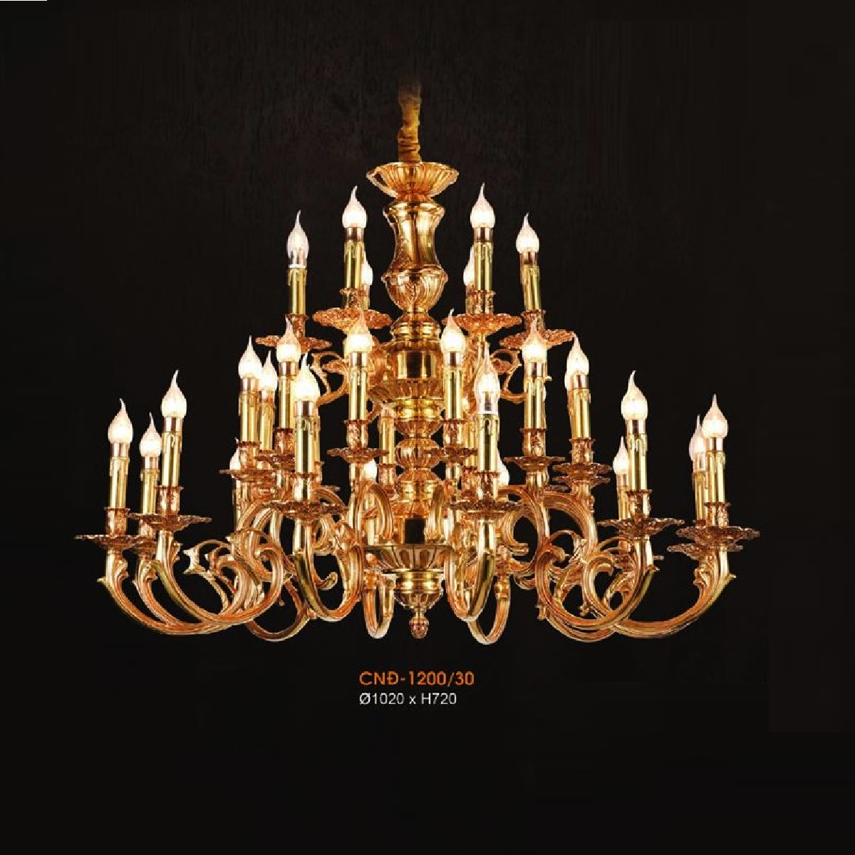 - Sản phẩm: VE - CĐ - 1200/30: Đèn chùm đồng 30 tay - KT: Ø1020mm x H720mm - Bóng đèn E14 x 30 bóng