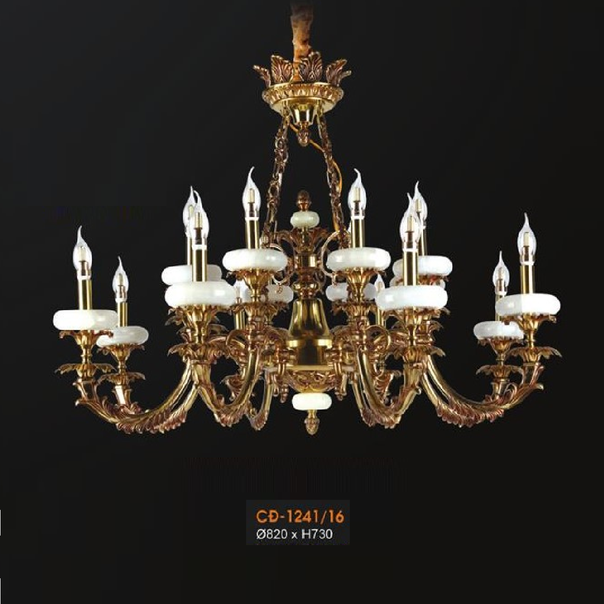 • Sản phẩm: VE - CĐ - 1241/16: Đèn chùm đồng 16 tay, chao đá - KT: Ø820mm x H730mm - Bóng đèn E14 x 16 bóng