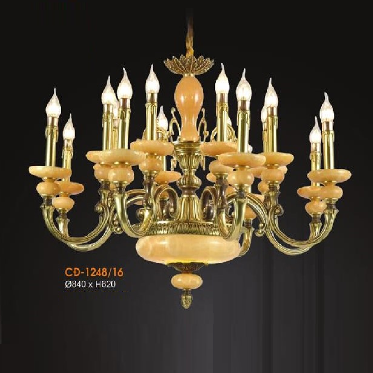 • Sản phẩm: VE - CĐ - 1248/16: Đèn chùm đồng 16 tay, chao đá - KT: Ø840mm x H620mm - Bóng đèn E14 x 16 bóng