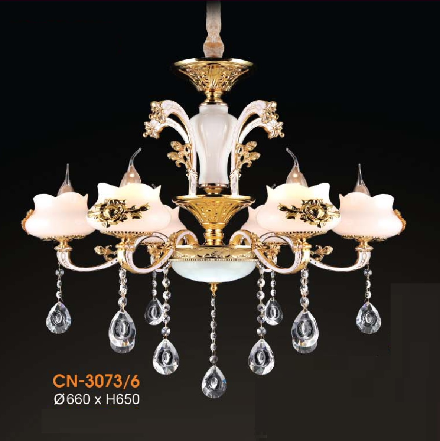 5. VE - CN - 3073/6: Đèn chùm nến 6 tay - KT: Ø660mm x H650mm - Đèn nến chân E14 x 6 bóng + Đèn LED