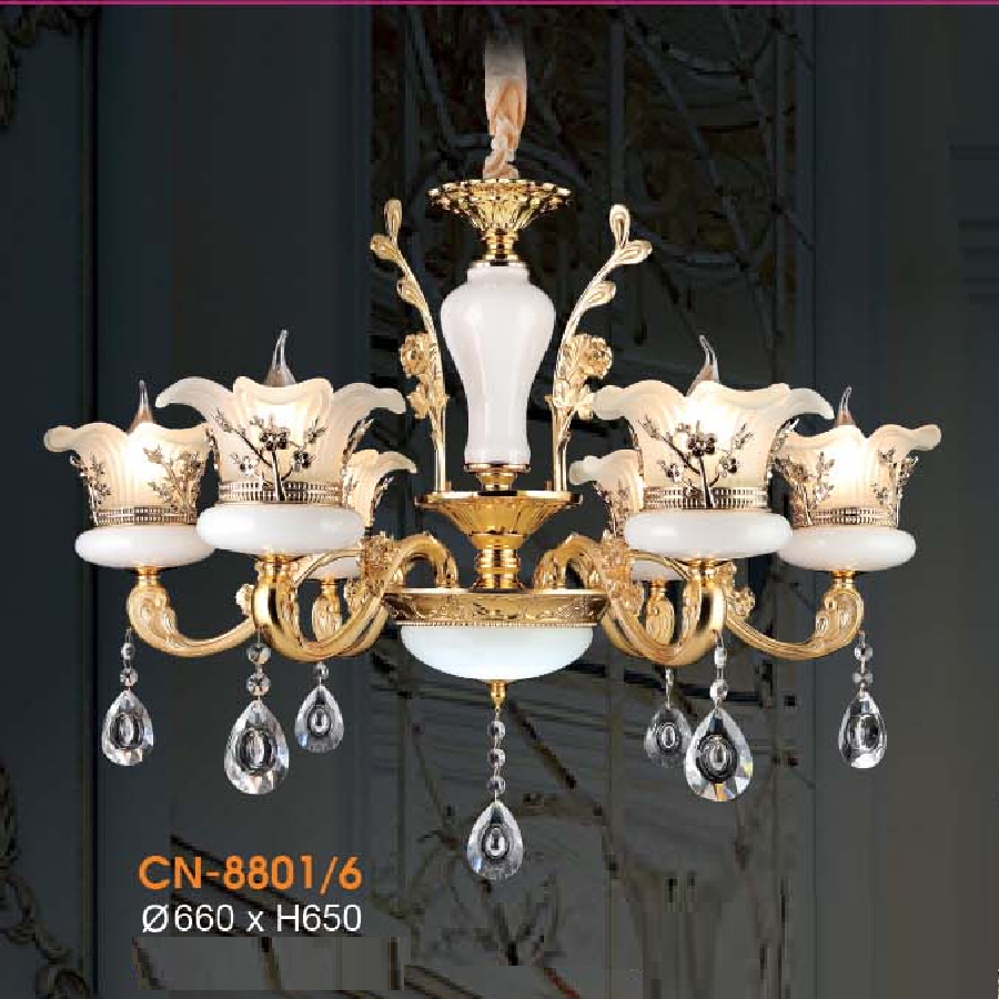 VE - CN - 8801/6: Đèn chùm nến 6 tay - KT: Ø660mm x H650mm - Đèn nến chân E14 x 6 bóng + Đèn LED