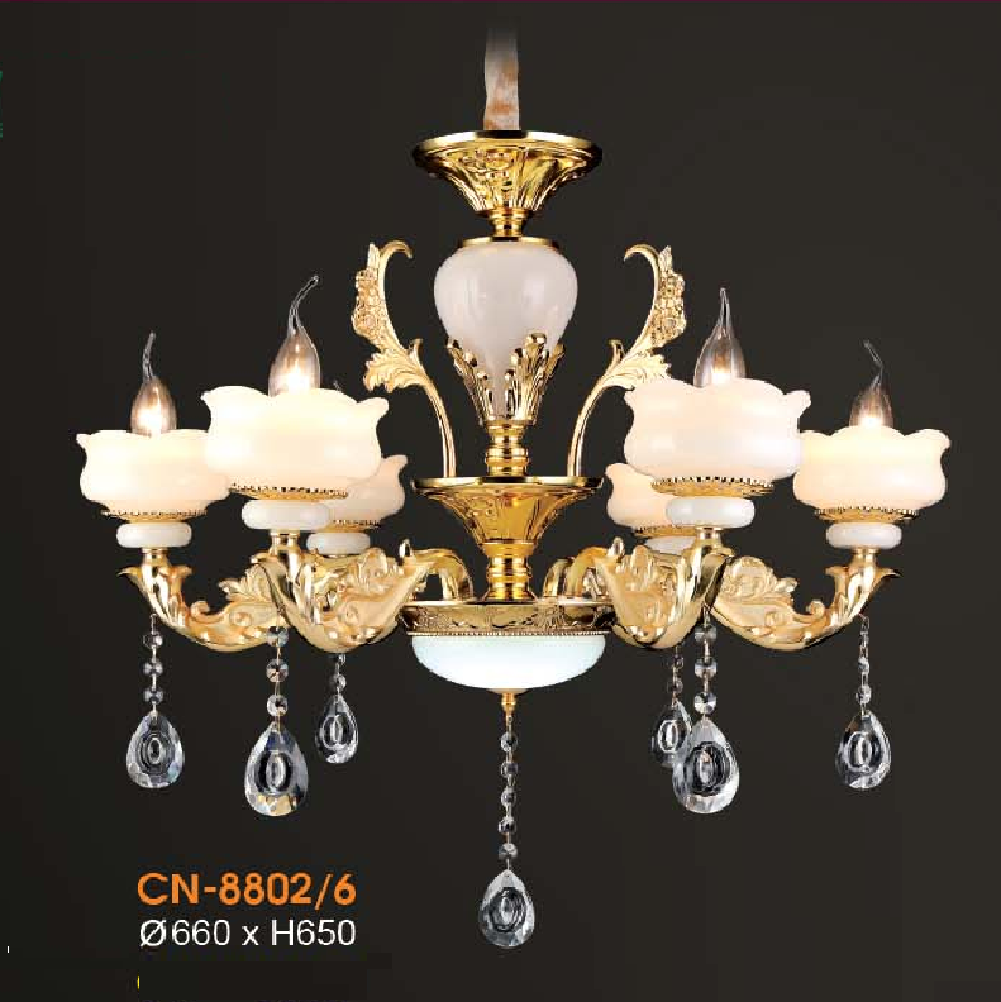 VE - CN - 8802/6: Đèn chùm nến 6 tay - KT: Ø660mm x H650mm - Đèn nến chân E14 x 6 bóng + Đèn LED