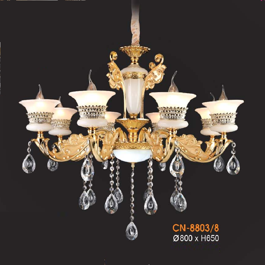 5. VE - CN - 8803/8: Đèn chùm nến 8 tay - KT: Ø800mm x H650mm - Đèn nến chân E14 x 8 bóng + Đèn LED