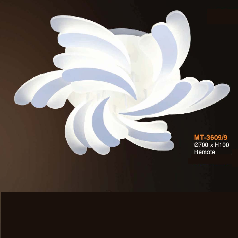 • Sản phẩm: VE - MT - 3609/9: Đèn áp trần LED 9 cánh - KT: Ø700mm x H100mm - Đèn LED đổi 3 màu - Remote