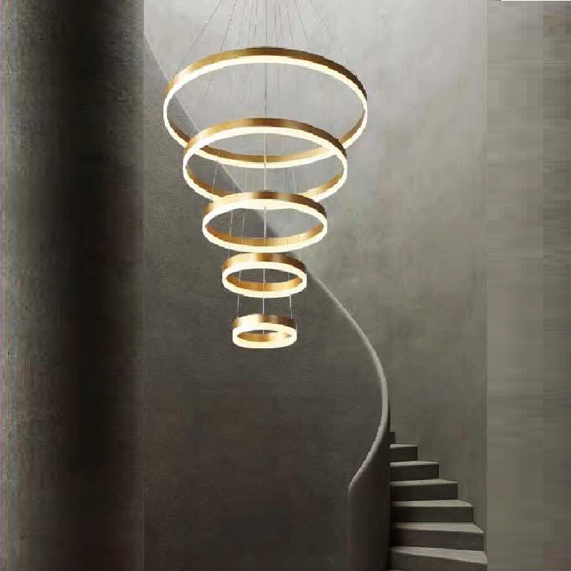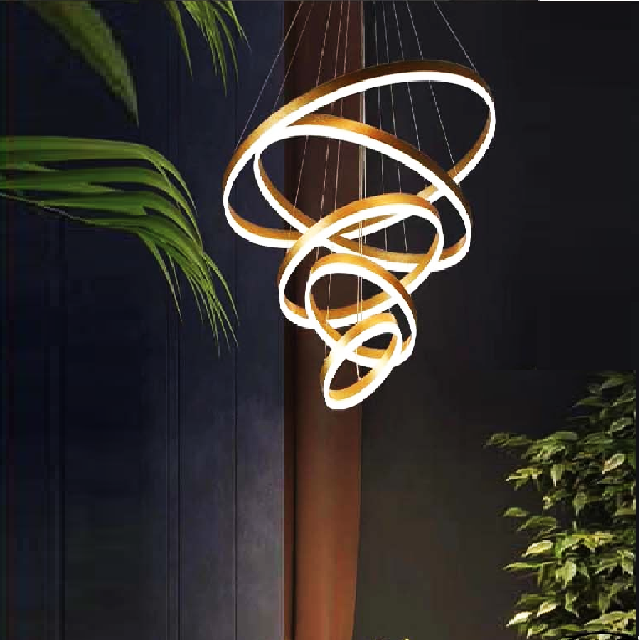 VE - T- 7550/5V: Đèn thả LED 5 vòng - KT: (200+400+600+800+1000)mm x H3000mm - Đèn LED đổi 3 màu có chức năng tăng giảm ánh sáng