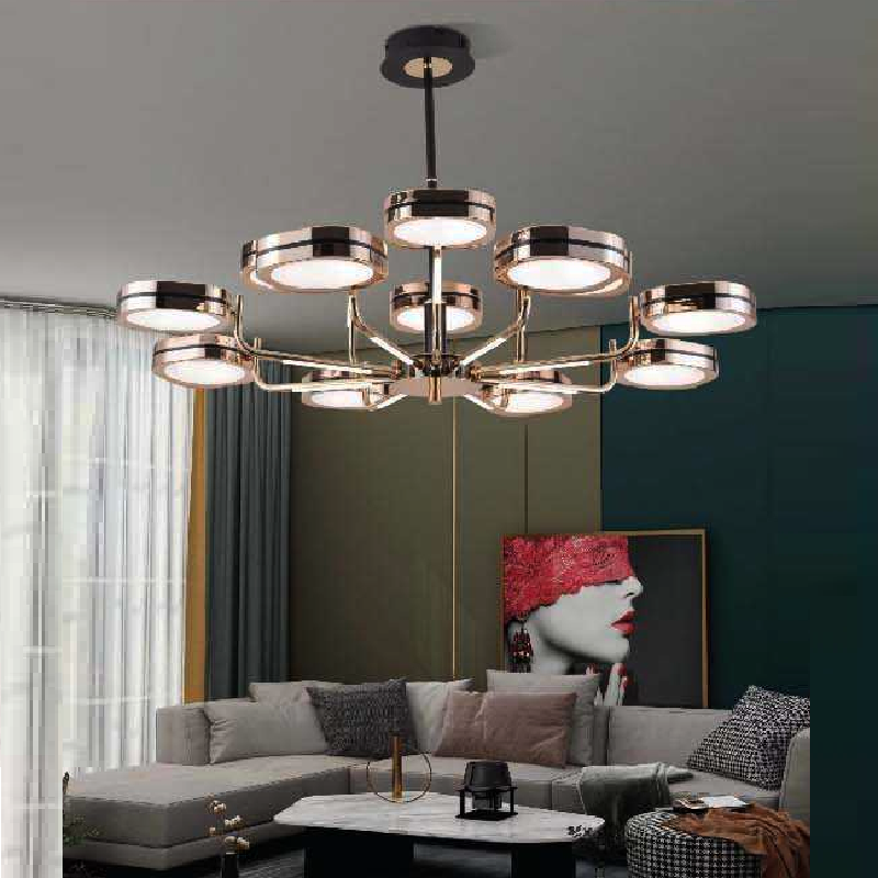 - Sản phẩm: VE - T - 802/12: Đèn chùm LED 12 tay - KT: Ø1000mm x H610mm - Đèn LED đổi 3 màu