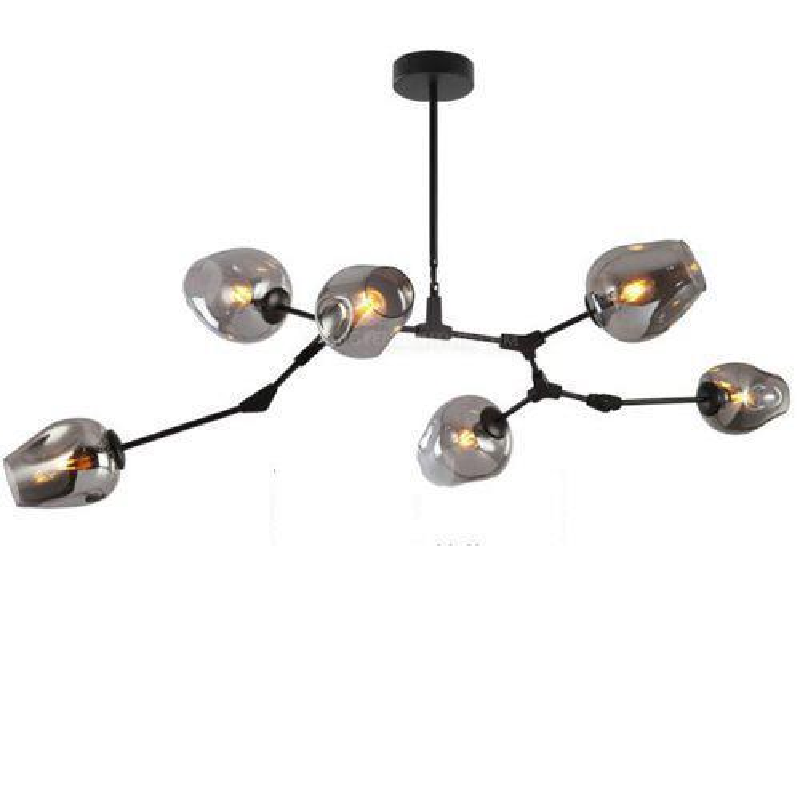 5. VE - T - 882/6: Đèn chùm 6 bóng, thân sơn đen, chao thủy tinh màu khói - KT: 800mm x H800mm - Bóng đèn E27 x 6 bóng