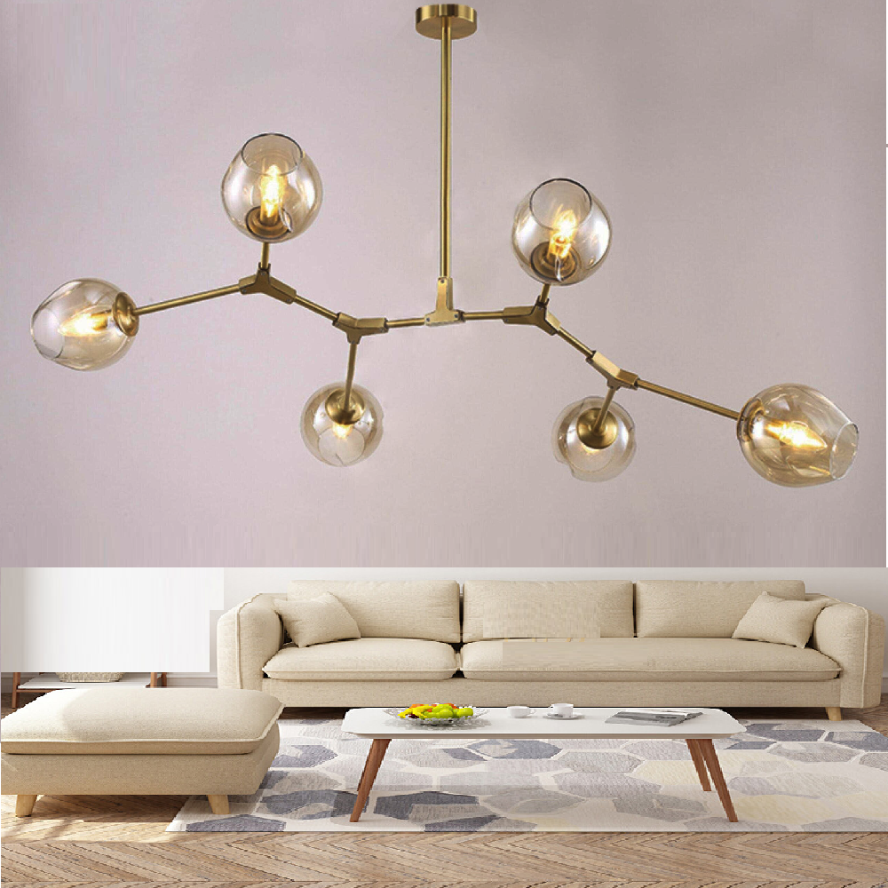 - Sản phẩm: VE - T - 882/6: Đèn chùm 6 bóng, thân sơn vàng, chao thủy tinh màu trà - KT: 800mm x H800mm - Bóng đèn E27 x 6 bóng