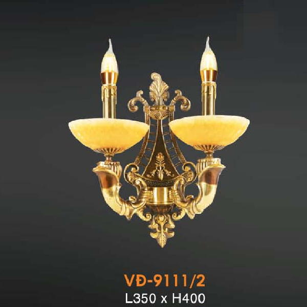 - Sản phẩm: VE - VĐ - 9111/2: Đèn vách đồng đôi, chén đá - KT: L350mm x H400mm - Bóng đèn chân E14 x 2 bóng