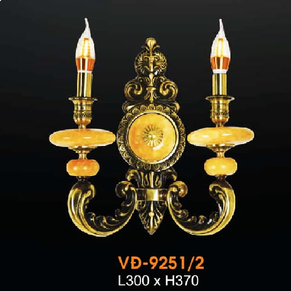 • Sản phẩm: VE - VĐ - 9251/2: Đèn vách đồng đôi, chén đá - KT: L300mm x H370mm - Đèn chân E14 x 2 bóng