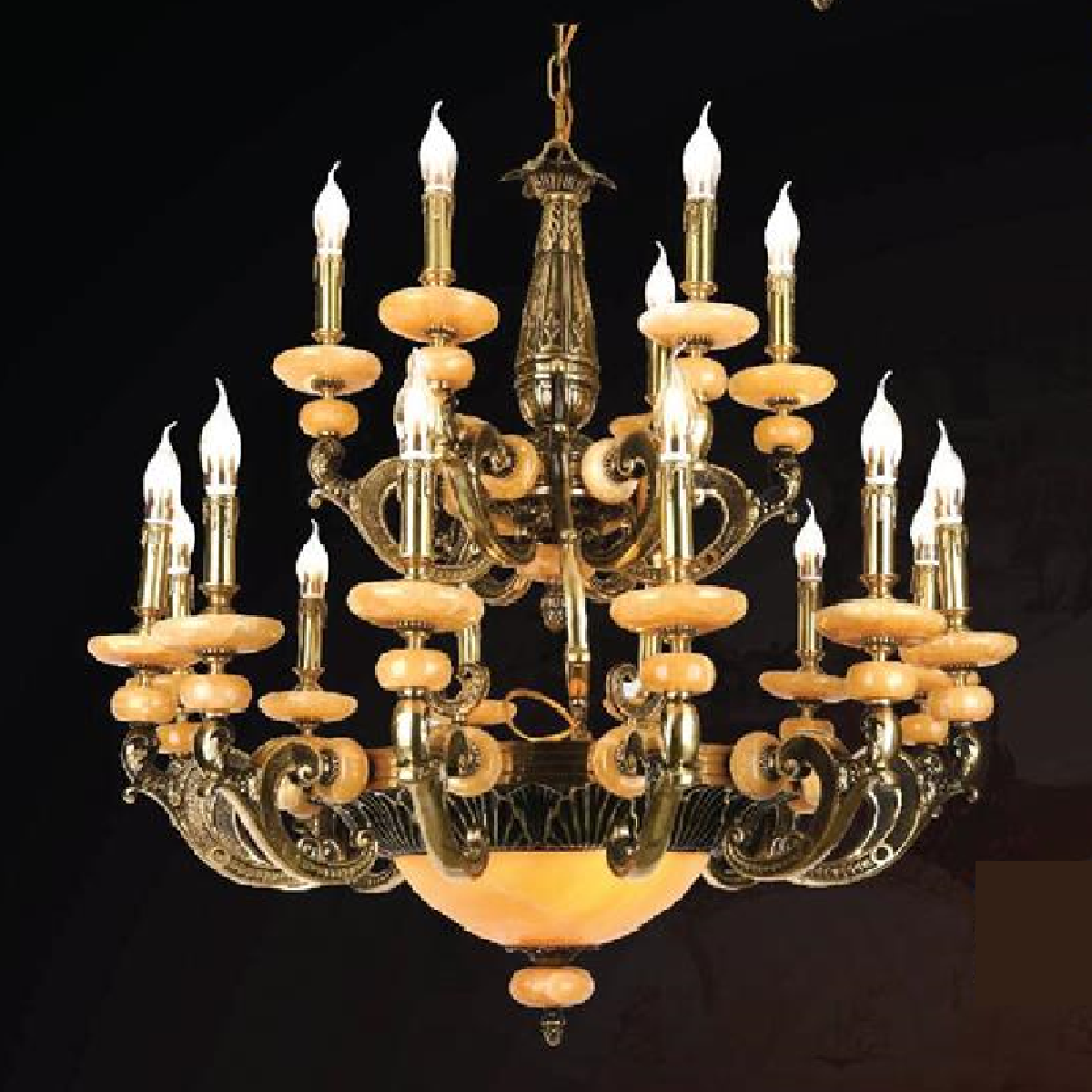 E - CD 183/8+4: Chùm đồng 12 tay, chao đá - KT: Ø930mm x H680mm - Bóng đèn chân E14 x 12 bóng + Đèn LED SMD