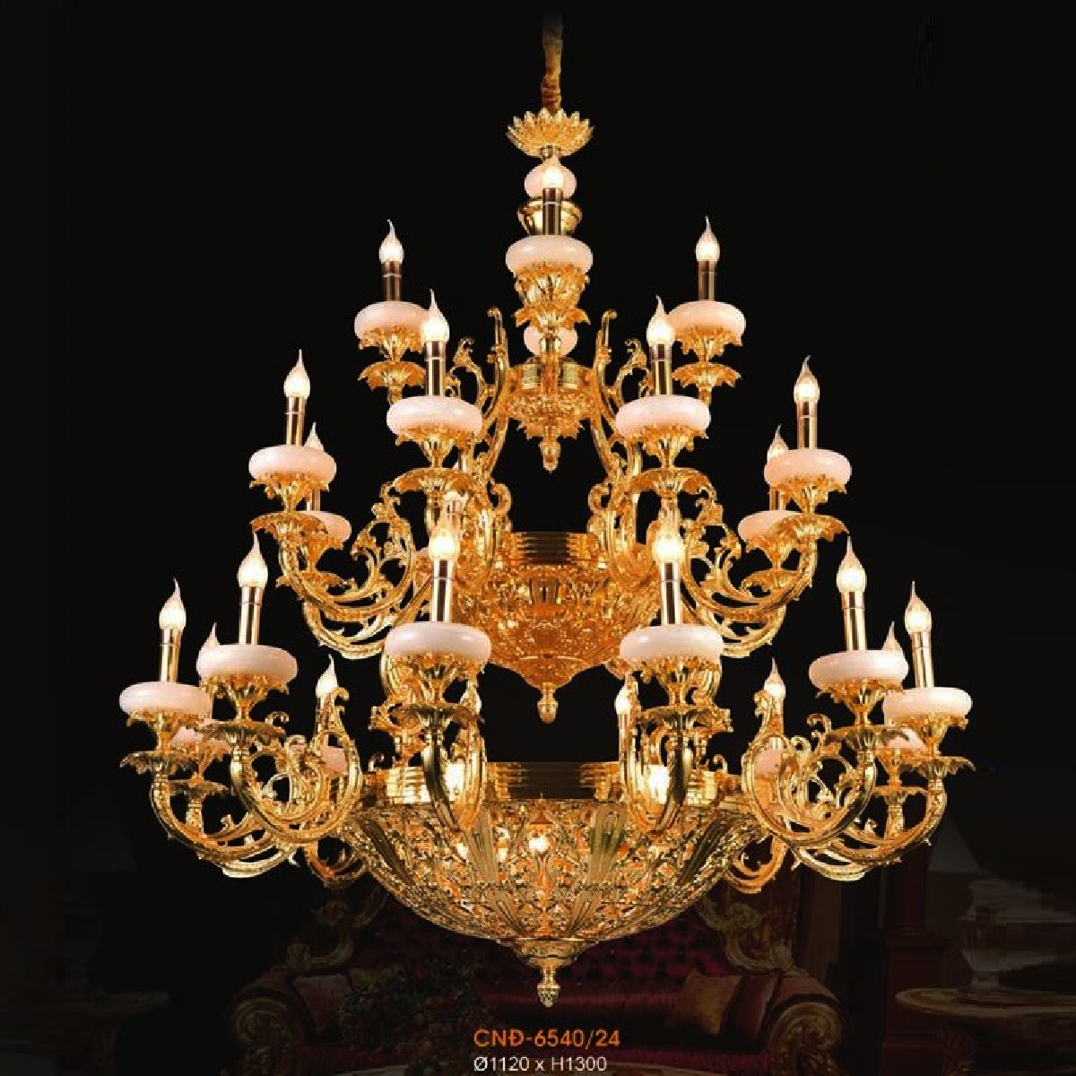 - Sản phẩm: VER - CĐ - 6540/24: Chùm đồng 24 tay, chao đá - KT: Ø1120mm x H1300mm - Bóng đèn chân E14 x 24 bóng