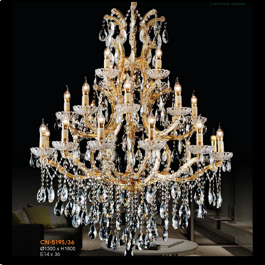 - Sản phẩm: VE - CN - 5195/24: Đèn chùm Phale nến 24 tay - KT: Ø1000mm x H1300mm - Đèn nến chân E14 24 x 19 bóng