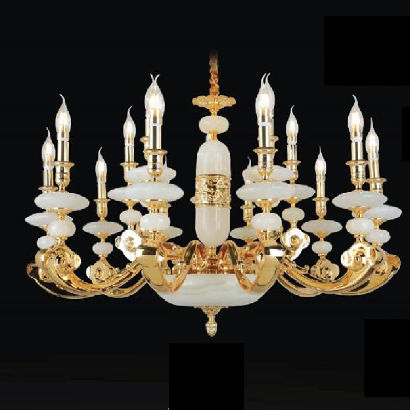 E - CD 183/8+4: Chùm đồng 12 tay, chao đá - KT: Ø930mm x H680mm - Bóng đèn chân E14 x 12 bóng + Đèn LED SMD